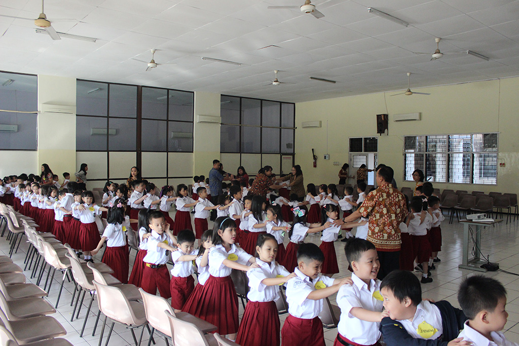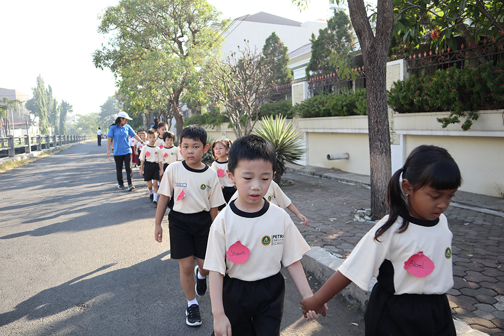 Yeay! Saatnya kembali ke sekolah. Hari pertama masuk sekolah tahun ini, SD Kristen Petra 10 Surabaya menyambut siswa/ siswi dengan meriah. Kali ini beberapa siswa/ siswi dari kelas VI mengenakan kostum layaknya raja dan ratu dari sebuah kerajaan. Mereka menyambut hangat teman-teman dan adik kelas dengan berjabat tangan di pintu masuk sekolah. Bagian depan sekolah yang sudah didekorasi menjadi sebuah istana berwarna pink cerah membuat siswa/ siswi tambah bersemangat mengawali hari pertama mereka.