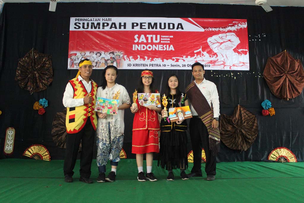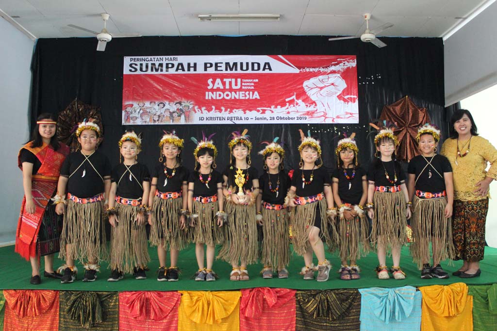 “Bersatulah semua, seperti dahulu,” sepenggal lirik lagu berjudul Pemuda mengingatkan kita, kaum muda, untuk kembali bersatu padu membangun Indonesia. Dengan tujuan ini, dalam memperingati Hari Sumpah Pemuda di tahun 2019 ini, SD Kristen Petra 10 mengangkat tema, “Satu Tanah Air, Satu Bangsa, Satu Bahasa, INDONESIA”.